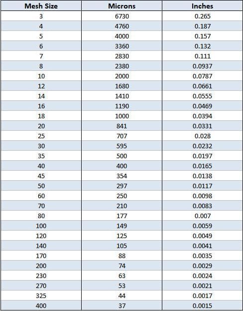 • Very Fine Mesh (550 - 12000) - Mesh in this size range are used to filter vary fine particles. These sizes will capture the finest sand down to bacteria and even blood cells. We do not currently offer this grade Mesh at GWENDE but if you contact us we may be able to source up to a 550 mesh. Any higher than 550, we would recommend looking into pharmaceutical/fine oil and gas strainers and meshes.